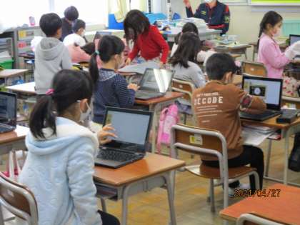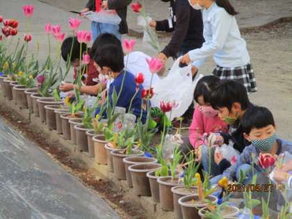 チューリップの球根をとったり、キーボードの練習をしたり、それぞれの活動を進んで行う姿が見られます。