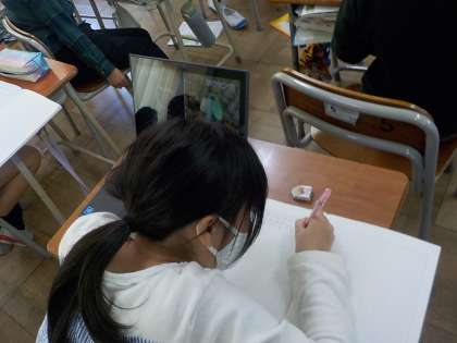 3年生は、理科の学習でホウセンカとヒマワリの種の育ち方の違いについて調べました。動画を見ながらそれぞれの育ち方をよく観察し、似ているところと違うところを見つけました。