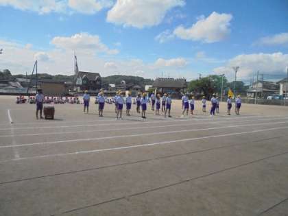 よい天気のもと、本番に向けて6年によるエール「がんばれ呉羽っ子」のリハーサルを行いました。
