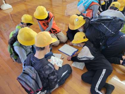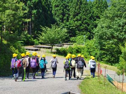 5年生 宿泊学習 その7 公開日 2021/06/01 更新日 2021/06/01 5年生の活動 2日目の活動は、こどもの村お宝さがしです。 暗号を解いて、問題が隠されている場所を探します。元気よく出発!