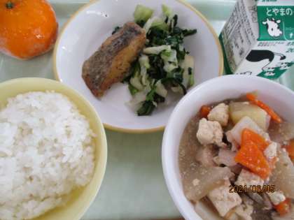さかなのえごまみそかけ れいとうみかん 蒸し暑い日に、栄養たっぷり、冷たさがうれしいメニューでした。