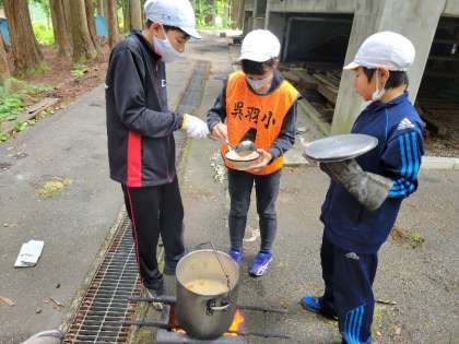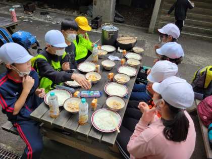 いい感じのおこげもできて、美味しく炊き上がりました。みんなで協力してつくった豚汁の味も格別です。