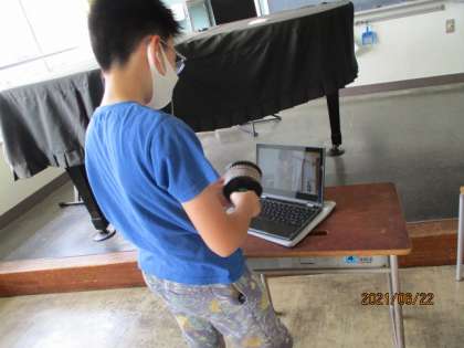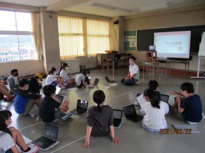 朝から打楽器やオルガンの音が聞こえてきます。5年生が音楽会に向けての練習を開始しました。動画を見ながら自主練習しています。また、委員会活動で集合した子供たちもそれぞれに端末をもってきて、各クラスからの意見を確認しながらこの後の作業の分担をしています。