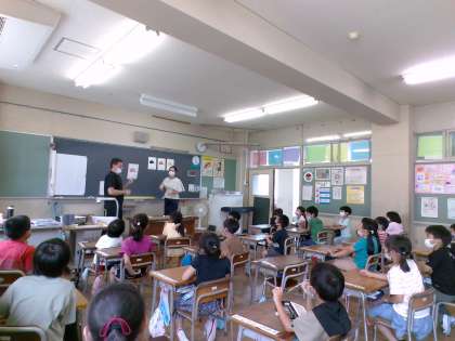 英語で色の名前を言う練習をし、元気に楽しく活動しました。英語の本を読んでもらい、自分で想像しながらちょうちょの色を塗りました。おうちの人に紹介してみましょうね。