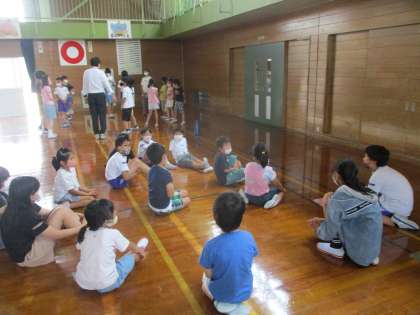 今日は第1回のふれあい遊びを行いました。6年生が中心となって自己紹介をしたり、簡単なゲームをしたりしました。みんな初めは緊張で表情が硬かったのですが、だんだんと笑顔に変わっていきました。来週には第2回ふれあい遊びがあります。楽しみですね。