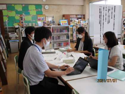 先生たちもがんばっています 公開日 2021/07/01 更新日 2021/07/01 本校研修 研修会で、いろいろな意見を出し合ったり、どんなふうに授業をしたら、みんなが楽しく学びたくなるか一生懸命考えたりしています。