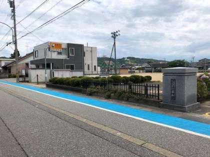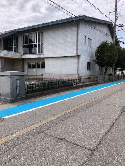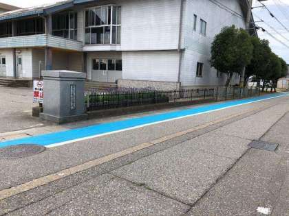 子供たちの登下校の際の安全を確保するために、学校の校舎東側道路の歩道が敷地に合わせてカラー舗装されました。水色の鮮やかな色で目立ちます。子供たちの意識も高めながら、安全な歩き方を指導していきます。