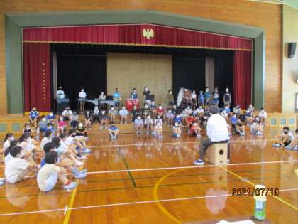 音楽会に向けて 公開日 2021/07/19 更新日 2021/07/19 5年生の活動 5年生は、10月の区域音楽会に向けて練習を積み重ねています。今日は、外部講師の先生をお招きして、合唱や合奏の指導をしていただきました。リズムの取り方や声の出し方など、みるみるうちに表現が変わっていきました。夏の間も個人練習を重ねて、みんなで素敵な演奏を楽しみたいですね。