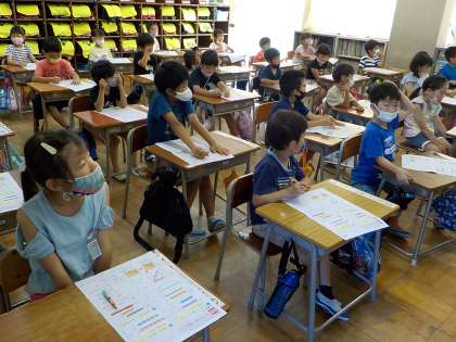 4月に入学してから、いろんなことができるようになった1年生。みんなで協力して、たのしい集会の準備をしたり、聞く態度をお互いに注意しあいながら先生の話を聞いたりたくさんの「できた!」があった1年生です。