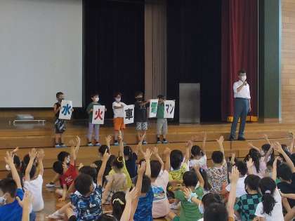 終業式の後、離任式を行い、感謝の気持ちを伝えました。また、生徒指導主事から夏休みの過ごし方についての話がありました。夏休みの間は、子供たちにとって楽しいことが多くありますが、火や水、車などの事故の心配もあります。子供たちが約束を守り、心も体も元気に過ごすことを願っています。