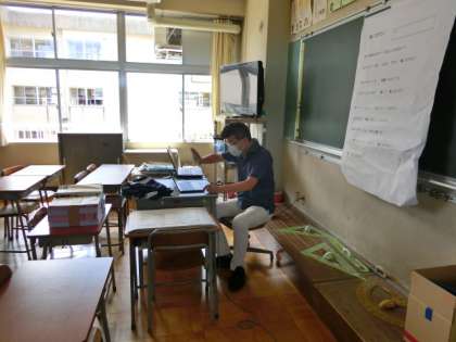 一人一台端末のMeetを使って子供たちと話をしました。元気に過ごしているかを確認したり、「宿題はもう終わったよ」「総合の学習でお年寄りにインタビューしたよ」と学習の話をしたりしました。夏休み中の子供たちのがんばりを聞くことができました。