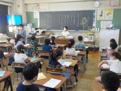 久しぶりに友達や先生と会えてとても嬉しそうな様子の子供たちでした。休み時間には、友達と距離を取りながら楽しそうに走ってる姿も見られました。また、夏休み中に取り組んだ応募作品や自由研究を見合って作品のいいところを見つけました。
