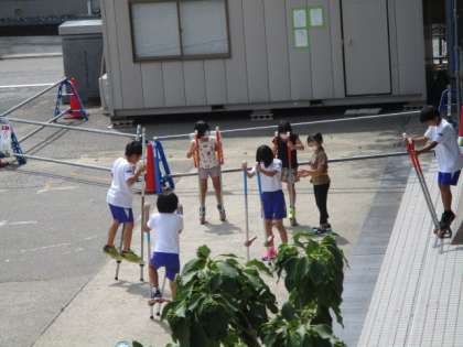 感染症対策を子供たちに考えながら、遊んでいます。休み時間には、声を出さずともグラウンドを元気に走ったり、ソーシャルディスタンスを意識して遊び方を工夫する姿が見られます。