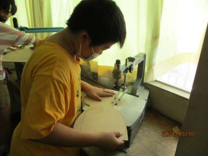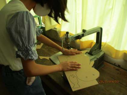 電動糸のこぎりを上手につかって、曲線や細かな部分も丁寧に切り抜いています。安全に気を付けて、真剣に取り組んでいる姿がすてきでした。