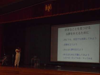 広野あさみさん「自分らしく挑戦!みんなが輝ける未来に向かって」 公開日 2021/09/29 更新日 2021/09/29 6年生の活動 富山県出身のプロスノーボーダー広野あさみさんから、オリンピック選手になるまでや、オリンピックでの様子についてお話を聞きました。初めは目標や夢がなくても、いろんなことに何回でも挑戦していくことで夢や目標ができること、夢を叶えるために今まで自分がやってきたことに無駄なものはなかったことなど聞くことができました。