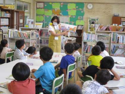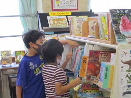 おすすめの本コーナーから、友達と相談しながら本を選んだり、司書の先生の本の紹介を聞いたりしながら、読書に親しむ1年生です。ぜんこうおしらせに「としょだより」ものせてあるので、ぜひ見てください。