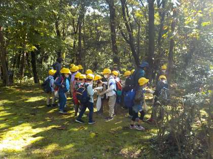 子供たちは太閤山ランドの丘や広場で、たくさんの秋の実を見つけて、うれしそうに見つけた木の実を見せ合ったり、うれしい思いを伝え合ったりしていました。