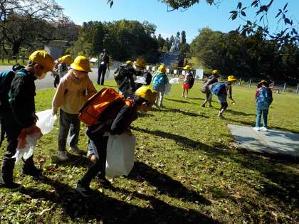 10月21日は、1年生の校外学習でした。生活科の学習では、秋の草花や自然となかよくなりたいと公園や中庭でいきものを見つけたり木の実を集めたりしています。