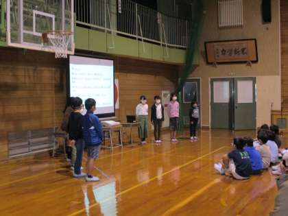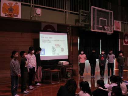 10月30日(土)に学びの発表会が行われ、4年生は「美しい富山〜自分たちにできることを伝えよう〜」で、各テーマ(地球温暖化、食品ロス、3R、SDGs、海洋ゴミ)計12グループに分かれ、今の現状や自分の考え、今後取り組んでいく自分たちにできることを発表しました。どのグループも大きな声で伝えていました。