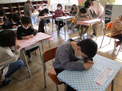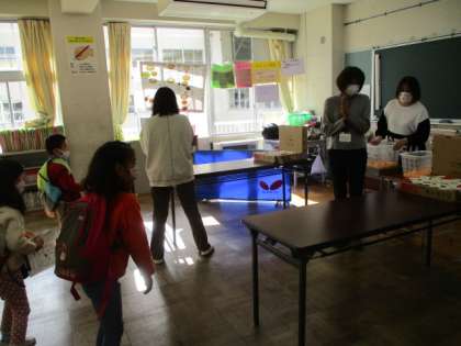 PTA主催の「チカラを合わせて楽しい時間を創ろうぜ!〜呉小ミニオリンピック〜」を開催中です。6つの遊びコンテンツとおみやげミニゲームがあり、事前に申し込みを済ませた子供たちが集まってきています。密を避けるために、60分ずつ三部に分ける工夫をしていただいています。「ピンポンカップイン」「型抜き」に真剣に挑戦中。