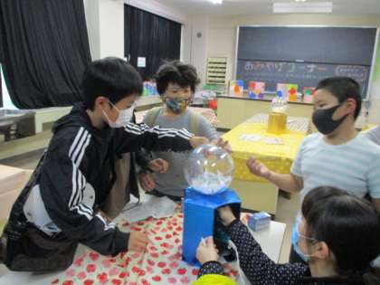 6つのコンテンツを回り終えたら「おみやげミニゲーム」に挑戦。お手製のくじ引きの機械も工夫されていて、何が当たるかドキドキ。たくさんの笑顔がみられます。