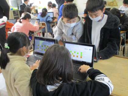 「すがたをかえる大豆」の学習を基に、読む人が分かりやすい段落の組み立てを考えています。調べたことをジャムボードに整理し、説明文を考えていきます。ルーブリックを基にしっかり振り返りをする姿も見られました。