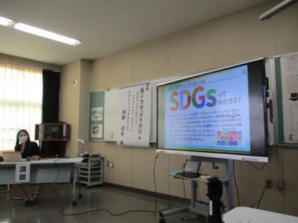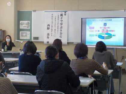 11月19日は、第3回目の学校公開日でした。2限と4限の授業公開の間には、PTA教育講演会がありました。講師として、SDGsコンサルタントの西野美冬先生を招き、講演「親子で学ぶSDGs 〜身近なことから始めよう!出来ることから一歩ずつ〜」を聞きました。