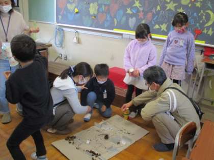 1年生は「あきとなかよし」でつくったおもちゃで、遊び方を説明したり、いっしょに楽しく遊んだりしています。
