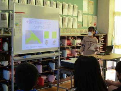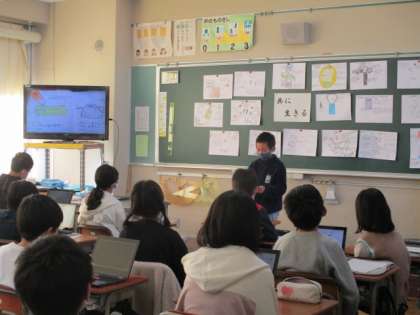 5年生は「共にいきる」について、各自が調べて考えたことを伝え合っています。