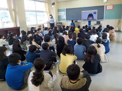 11月25日、Zoomを使って梨雲苑の職員の方へインタビューをしました。福祉について調べ学習をする中で芽生えた質問や気持ちを伝えました。「耳が聞こえづらい方もおられるので、顔を見てゆっくり話すように努めています」など、話を聞くことで、お年寄りと関わる上で大切な接し方や心構え等を学ぶことができました。