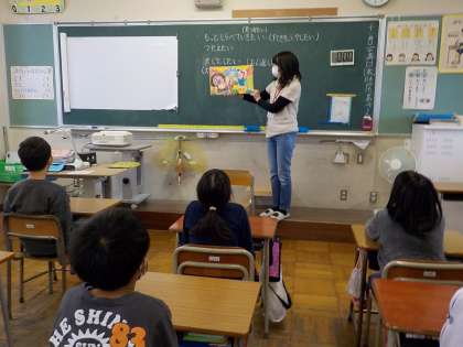 現在、校内読書週間を行っています。木曜日の読書タイムには、地域の方々が、しっとりと読み聞かせをしておられます。