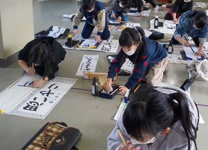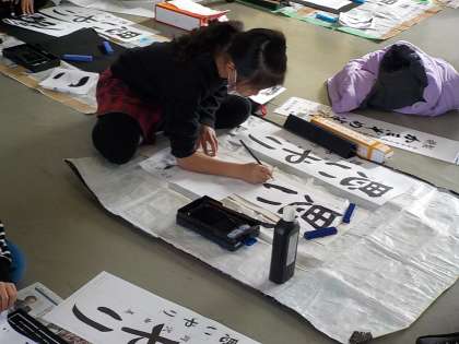 3年生は初めて書き初めに挑戦しました。姿勢に気を付けながら、丁寧に一文字一文字書きました。1月の書き初め大会までに、もっと上手になれるようにがんばります。