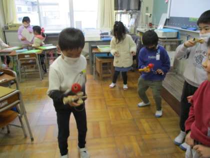 手あそび歌が聞こえてきたり、歓声があがったり、楽しく学習しています。