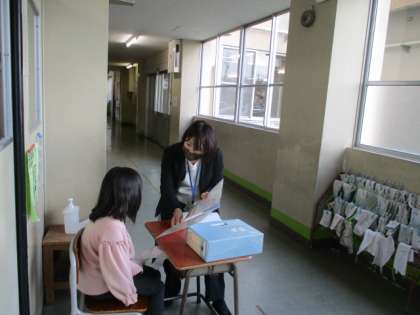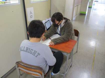 終業式後、各学年の廊下では一人一人にあゆみを渡しています。どきどきしながら受け取り、2学期をふり返りをしながら次への新たな目標をてて立てていました。