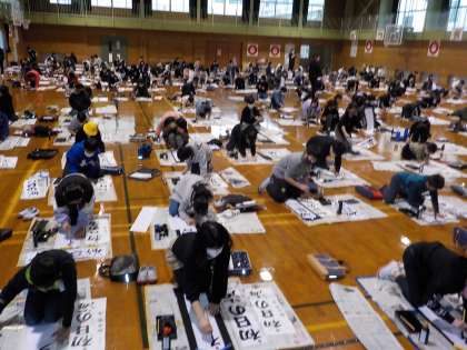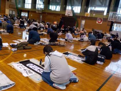 高学年は、中学年の後に、本番を迎えました。気持ちのよい緊張感の中、黙々と筆を運ぶ姿が立派でした。6年生にとっては、小学校生活最後の大会となりました。