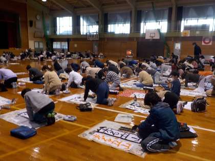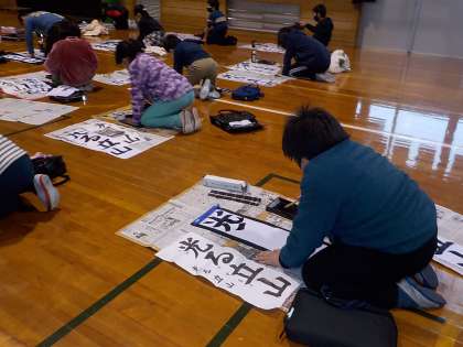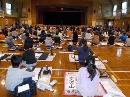 あけましておめでとうございます。3学期もよろしくお願いいたします。始業式の後、体育館で書き初め大会を行いました。子供たちは冬休みに練習した成果を発揮しようと、真剣に静かに集中して書いていました。書き上げた2枚を並べ、どちらの作品にしようか悩んでいる姿も見られました。