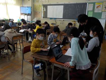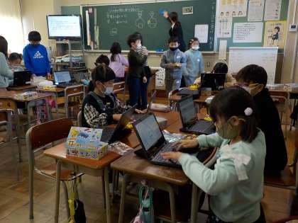 呉羽小学校では、子供が真剣に考える姿を目指し授業改善に取り組んでいます。一人一台端末の効果を、最大限に生かした工夫を探りながら毎日の学習で活用しています。