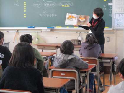 今日は、2年生と5年生のクラスで、CSスタッフの皆さんが読み聞かせをしてくださっています。みんな真剣に聴き入り、お話の世界に浸っています。