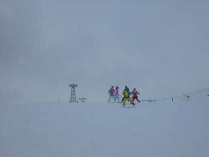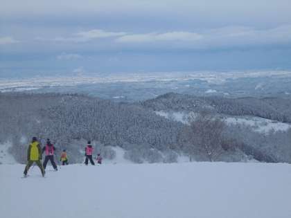 雪の晴れ間に見えた景色。景色を楽しんだ後は友達と励まし合い、一つ一つの動きを確かめながらグループで楽しく滑りました。