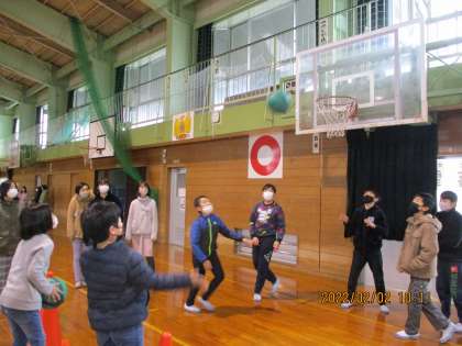 今日のリラックスタイムに、運動委員会の人たちが企画してくれたフリースロー大会が行われました。遠くからリングに入れるのは難しくて、なかなか得点することができませんでしたが、うまく入ったときにはとても喜んでいました。これからも運動に親しんで、体を鍛えていきましょう。