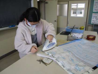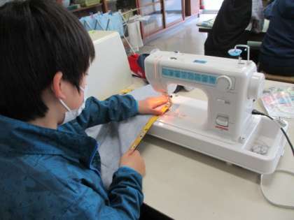 初めてのミシンに格闘しながら、エプロンづくりを進めています。