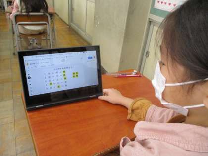 漢字をならべて言葉をつくる学習をしています。見つけたらすぐに挙手して、発表しようとやる気満々な様子です。