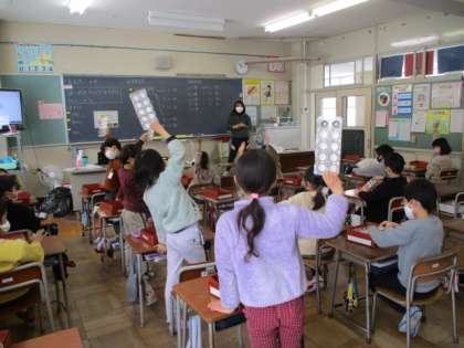 1年生 算数科 公開日 2022/02/06 更新日 2022/02/06 1年生の活動 おおきいかずの学習をしています。たまごパックを使って10のまとまりを意識しながら、みんなで数えた数を合わせています。