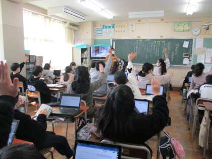 6年生 道徳科 公開日 2022/02/06 更新日 2022/02/06 6年生の活動 吉田松陰は、どのような人だったのか。「誠実な人」という文章を読み、事前に書き込んだ感想を見ながら話し合っています。
