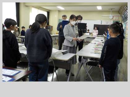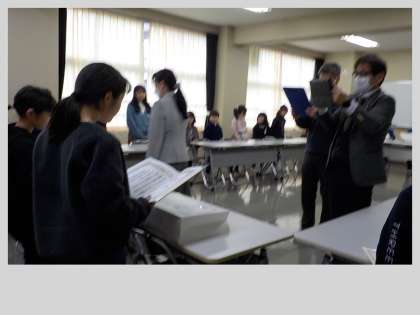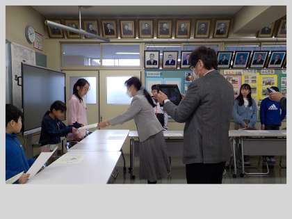3学期に各種の大会や作品展で受賞した子供たちの紹介動画の撮影が会議室で行われました。自分の得意な面を伸ばそうと努力した成果が認められて、子供たちはとても嬉しそうでした。受賞された皆さん、おめでとうございました。
