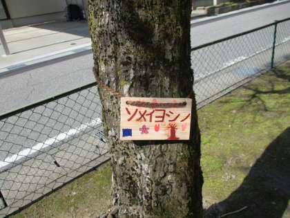 飼育栽培委員会が企画した「花と木のクイズ」に答えた子供たちが、学校にあるソメイヨシノのプレート作りを体験しました。色鮮やかに仕上がったプレートは、グラウンドや中庭にあるソメイヨシノに付けました。身近な自然に目を向け、季節の変化に気付いてくれたら嬉しいです。ソメイヨシノももうすぐ開花しそうです。