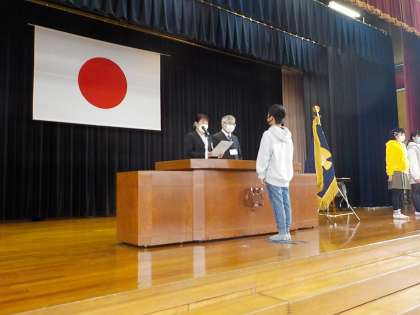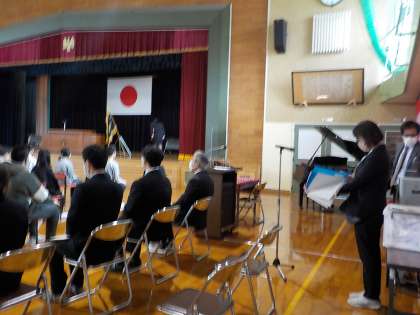 卒業式の前日練習を終えた後に、第6学年の修了式を行いました。各学級の代表の児童が、修了証を校長先生からいただきました。校長先生は、子供たちに、広く関心を広げて様々な事柄に関心をもち、自ら行動することを大切にしてほしいと話されました。いよいよ明日は卒業式。一人一人が体調を整えて参加してほしいと思います。