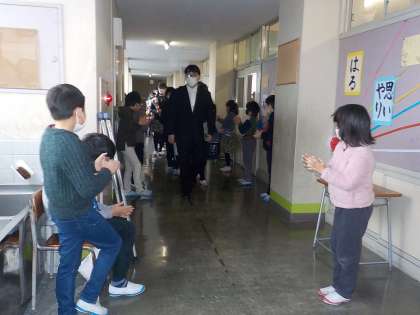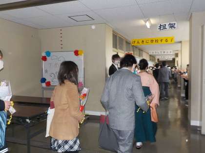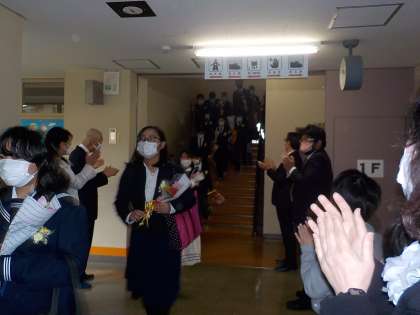 卒業生は、思い出深い教室から、在校生に見送られ体育館へ向かいました。子供たちは、地域の方や在校生へ自分の言葉で気持ちを伝えていました。