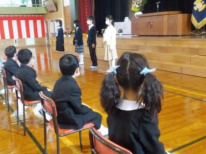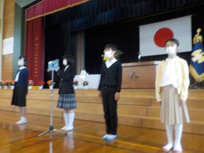 令和4年 入学式を終えて その2 公開日 2022/04/07 更新日 2022/04/07 行事より 入学式では、6年生の子供たちが「歓迎の言葉」を伝えました。 これから呉羽っ子の仲間として、一緒にすてきな呉羽小学校をつくっていきましょう。