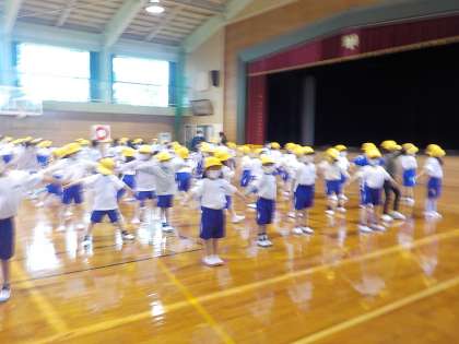 1年生 体育 じゅんびたいそう 公開日 2022/04/14 更新日 2022/04/14 1年生の活動 体育科の時間に、体育館で準備運動をしています。 両手を伸ばして広がりながら、しっかりならんでいます。